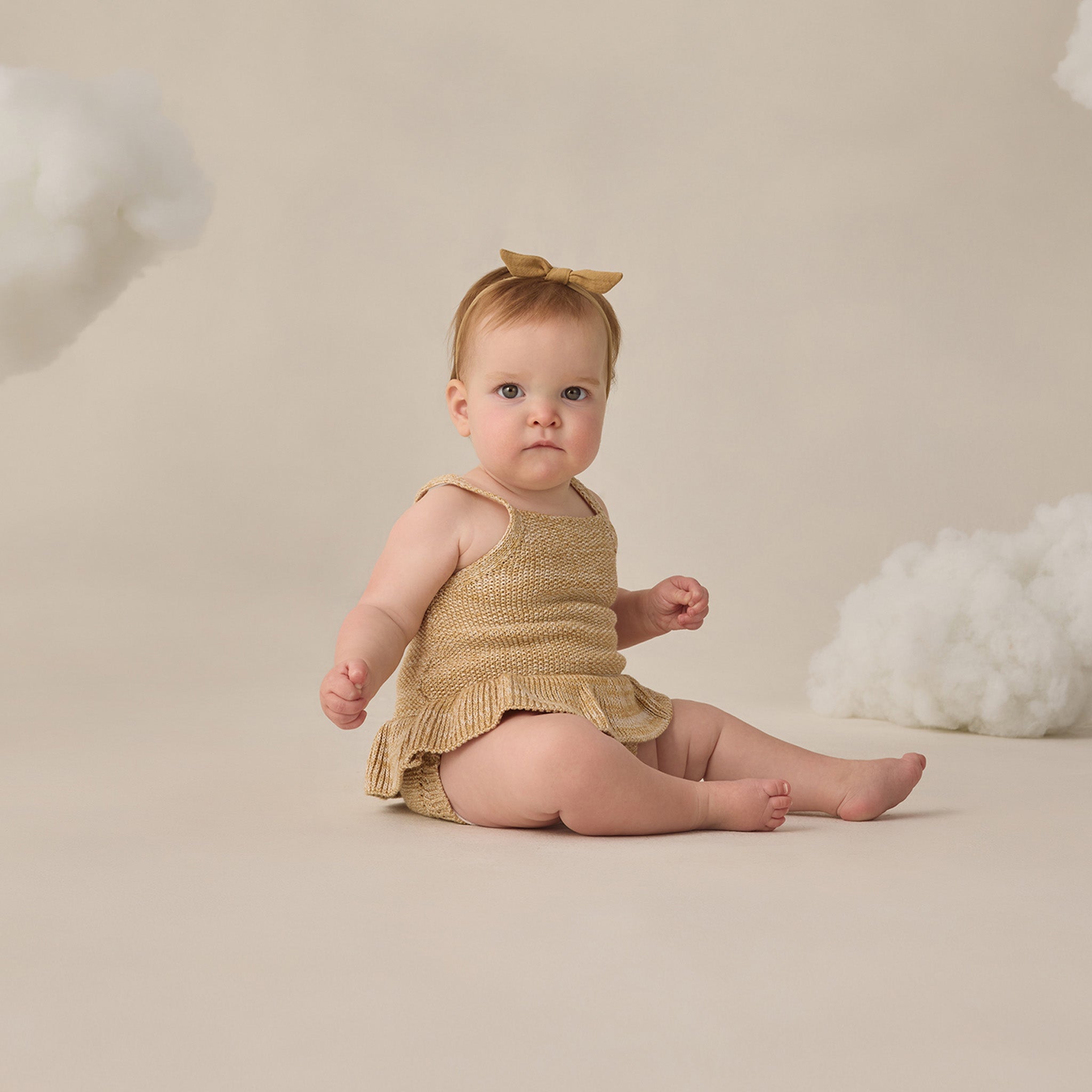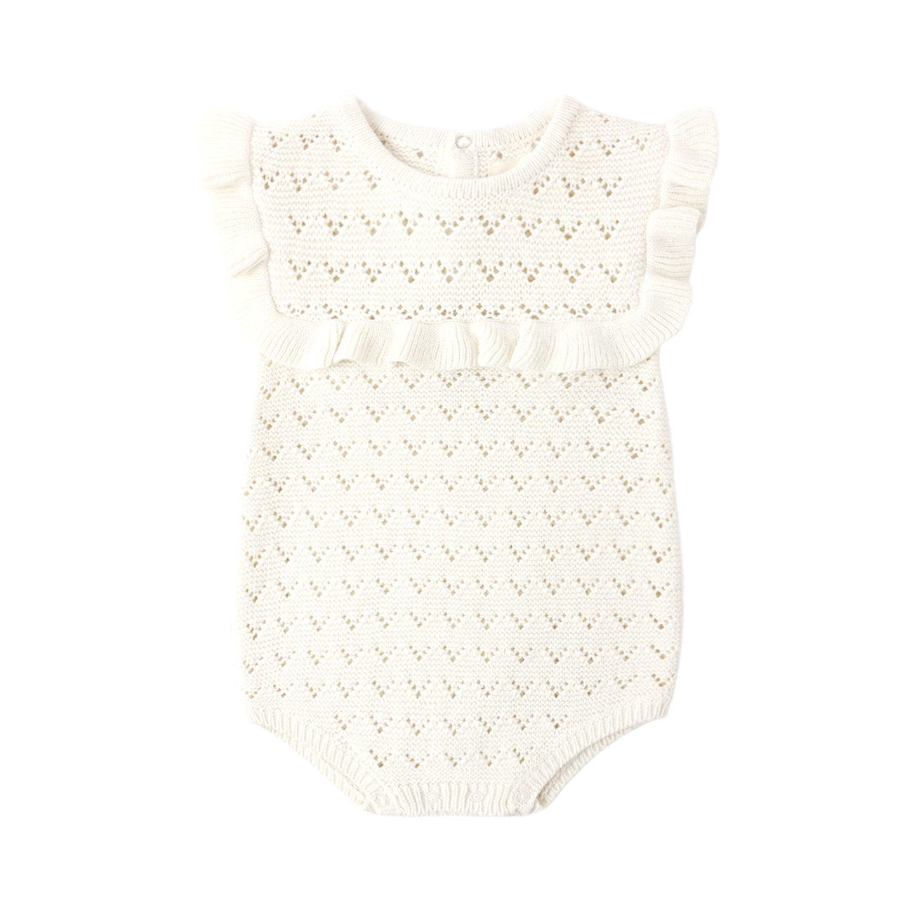 Pointelle Ruffle Romper Natural