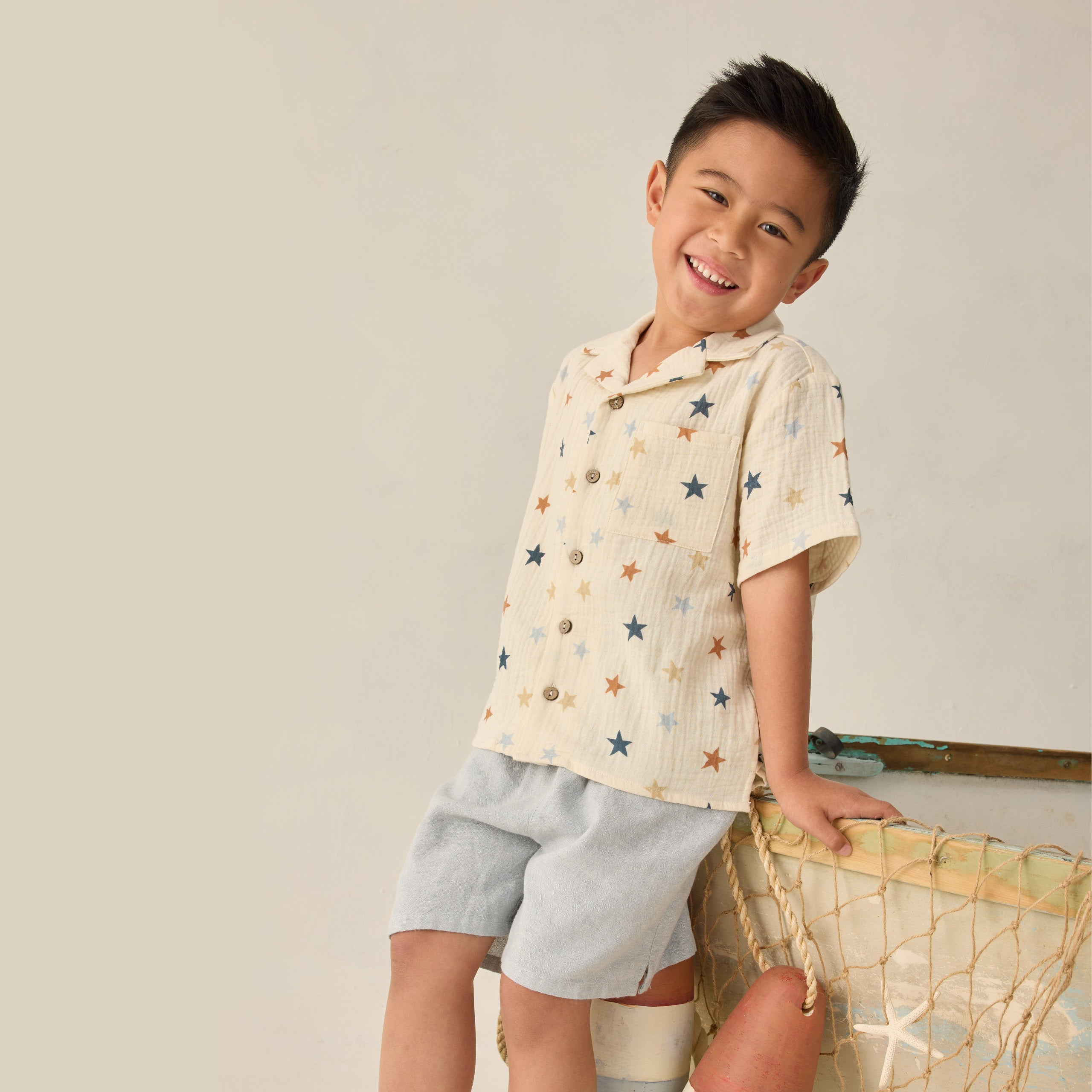 Boxy Pocket Tee + Short Set Poppy Stripe