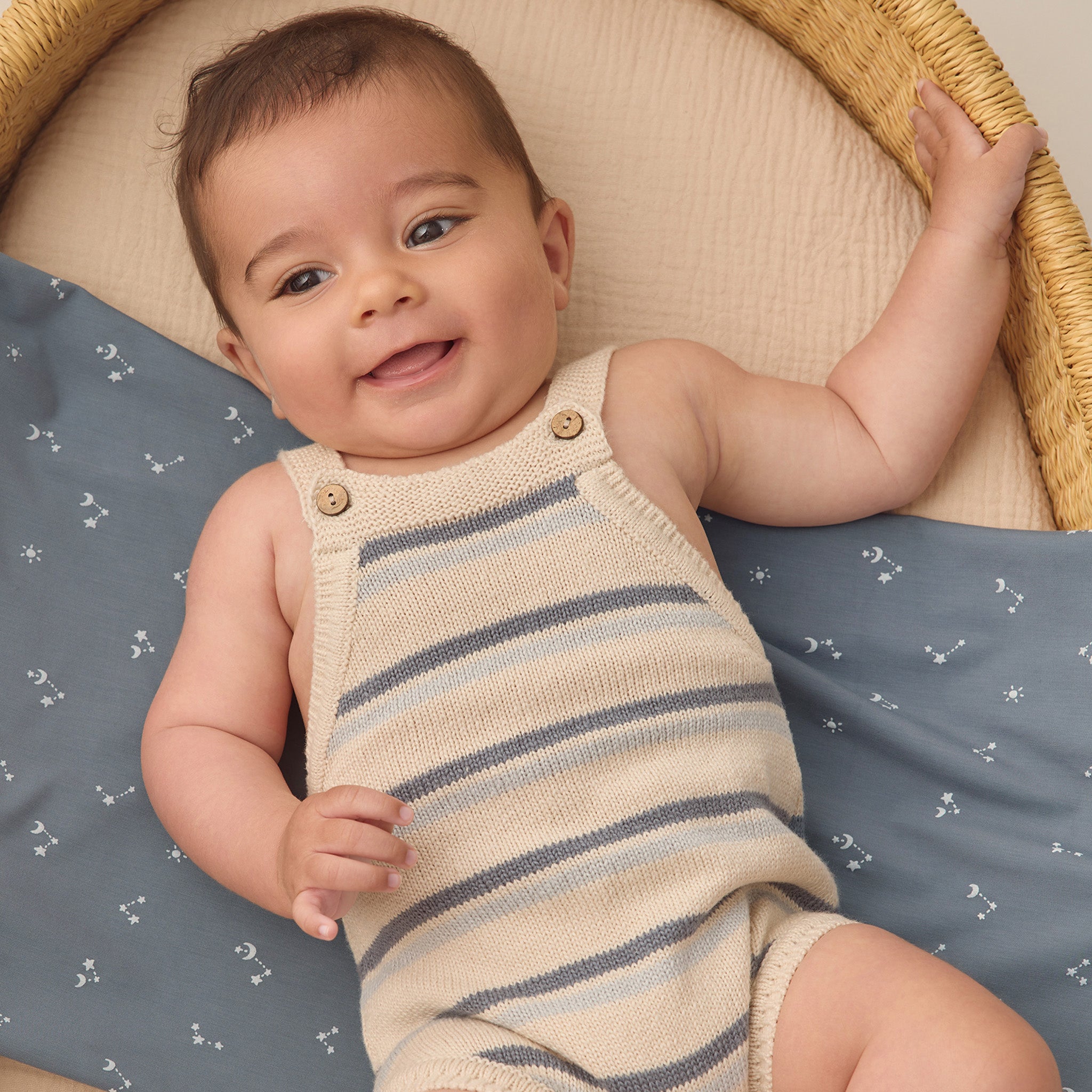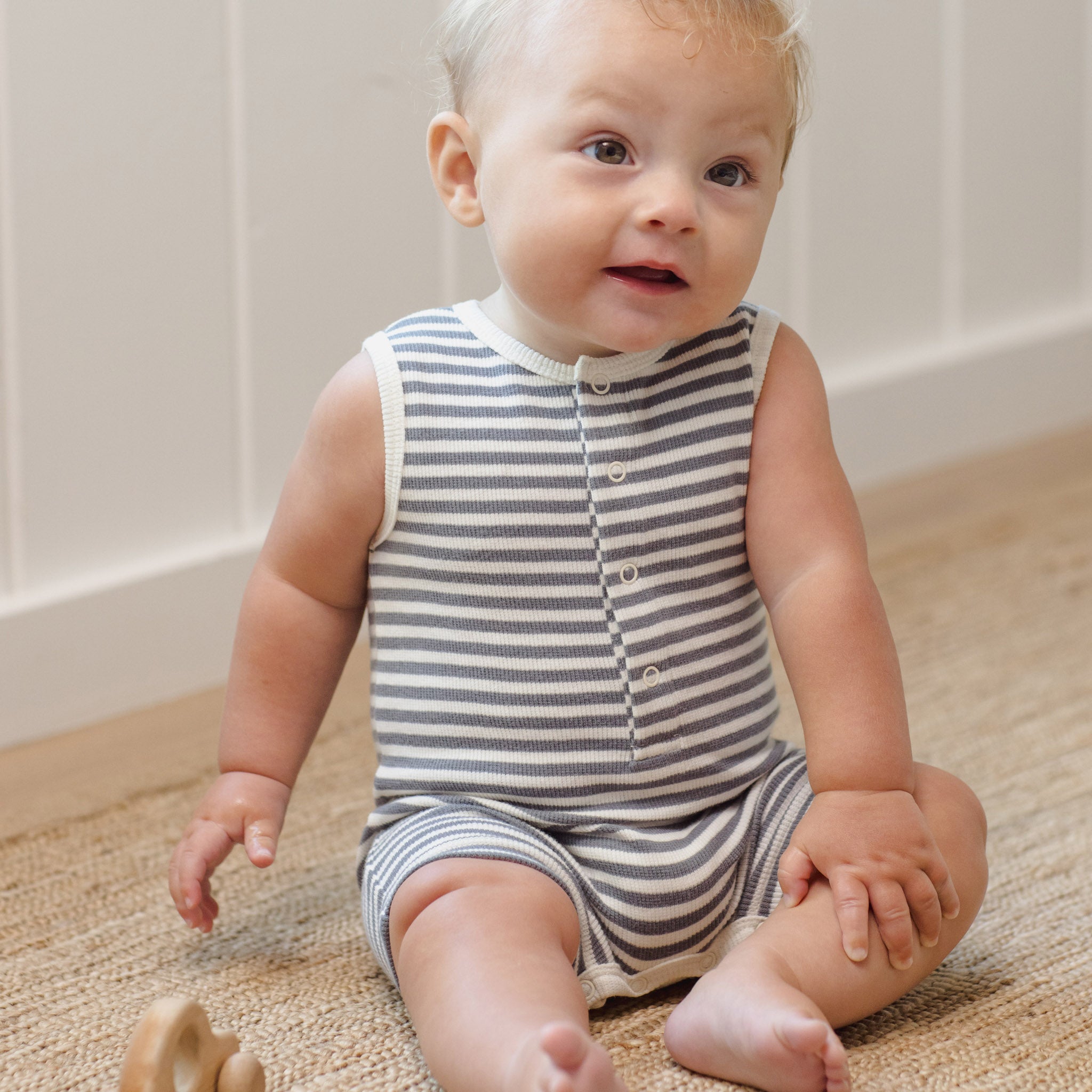 Ribbed Henley Romper Ocean Stripe