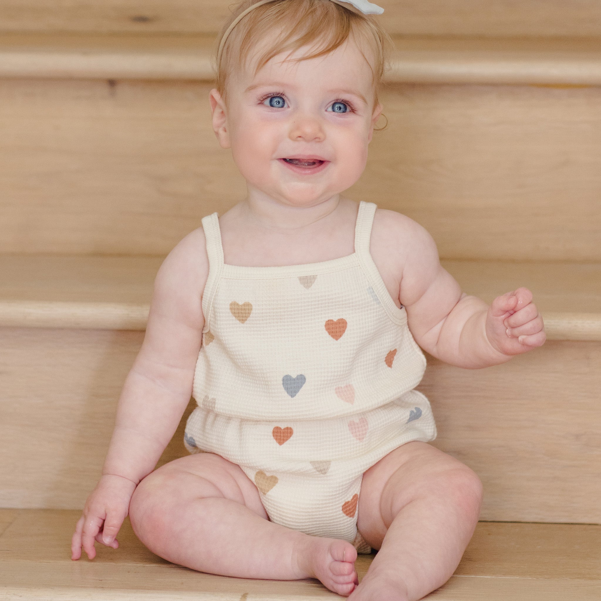 Waffle Cinch Romper Confetti Hearts